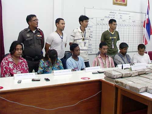 วันนี้ 15 มิถุนายน 2550 ที่ห้องประชุมสถานีตำรวจภูธรจังหวัดกระบี่ นายนายชัยเลิศ ภิญโญรัตนโชติ ปลัดจังหวัดกระบี่ ร่วมกับ พลตำรวจตรีภูวดล วุฒกนก ผู้บังคับการตำรวจภูธรจังหวัดกระบี่ ร่วมแถลงข่าวสื่อมวลชน ถึงการจับกุมผู้ต้องหาค้ายาบ้ารายใหญ่ ในพื้นที่จังหวัดกระบี่ ทั้งนี้สืบเนื่องจาก พันตำรวจตรีจรัล บางประเสริฐ สารวัตรจราจร สถานีตำรวจภูธรอำเภอเมืองกระบี่ พร้อมเจ้าหน้าที่ฯ ได้ตั้งด่านตรวจจับผู้กระทำความผิดกฎหมายจราจร และตรวจพบผู้ต้องสงสัยมีกัญชาไว้ในครอบครอง จากนั้น ได้ประสานงานกับหน่วยที่เกี่ยวข้อง ขยายผลการจับกุมสามารถรวบผู้ต้องหาได้ จำนวน 6 คน พร้อมของกลางในการกระทำความผิดอีกจำนวนมาก ประกอบด้วย นายประเสริฐ หรือแกน ระถะการ อายุ 31 ปี, นายสมบูรณ์ หรือหมีน บุตรเส็ม อายุ 33 ปี, นายวิโรจน์ หรือหรีม มาศโอสถ อายุ 34 ปี , นายสถาพร หรือป๊อก ป่าชาญ อายุ 27 ปี , นายอนุรักษ์ หรือ แป๊ะ เกกินะ อายุ 32 ปี ทุกคนอยู่ในท้องที่ จังหวัดกระบี่ และ นางสาวคณิศรา หรือ กระแต ศิริปี อายุ 32 ปี อยู่ในท้องที่จังหวัดตรัง