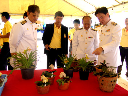 - ประธานในพิธีเปิดกรวยดอกไม้ถวายราชสักการะหน้าพระบรม ฉายาลักษณ์