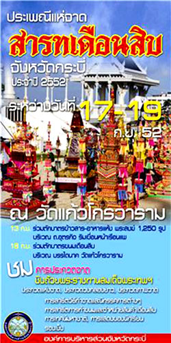 กำหนดการงานประเพณีแห่จาดสารทเดือนสิบ จังหวัดกระบี่ ประจำปี 2552