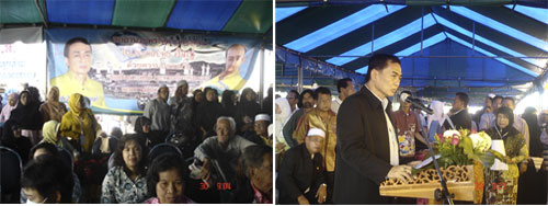 เมื่อเวลา 10.00 น. วันที่ 30 ตุลาคม 2552 ที่เต็นท์ที่พักผู้โดยสาร บริเวณท่าอากาศยานนานาชาติกระบี่ นายประสิทธิ์ โอสถานนท์ ผู้ว่าราชการจังหวัดกระบี่ นายภิญโญ สายนุ้ย สมาชิกวุฒิสภาจ.กระบี่ นายอาคม เอ่งฉ้วน นายพิเชษฐ พันธุ์วิชาติกุล นายสาคร เกี่ยวข้อง สมาชิกสภาผู้แทนราษฎรจังหวัดกระบี่ และนายสมศักดิ์ กิตติธรกุล นายกอบจ.กระบี่ ได้ร่วมกล่าวอำนวยพรให้แก่ ผู้แสวงบุญชาวจังหวัดกระบี่ จำนวน 273 คน ที่จะเดินทางไปกับเที่ยวบินพิเศษ ของบริษัท การบินไทย จำกัด(มหาชน) ในเวลา 14.00 น. วันนี้ โดยมีบรรดาญาติๆ มารอส่งขึ้นเครื่อง จำนวนกว่า 10,000 คน ส่งผลให้การจราจรบริเวณปากทางเข้าสนามบิน ติดขัดไปชั่วขณะ
